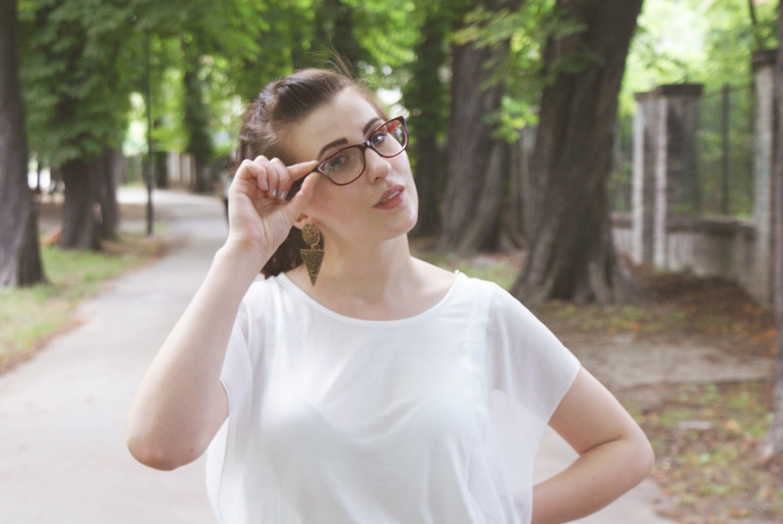 Nejvíc mě baví dílová sukýnka ke které mi brýle ladily, a volánové tričko, mimořádně příjemné na tělo - ačkoli je z viskózy a já v těhle vedrech obyčejně preferuji čistou bavlnu.